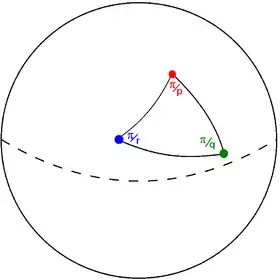 ![]() Triángulo de Schwarz (p q r) sobre una esfera |