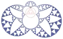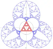 La inversióncircular https://en.wikipedia.org/wiki/Inversive_geometry aplicada al triángulo de Sierpinski, conquista no solo por su belleza, sino porque en ella se resumen e inter-actuan dos grandes conceptos de la geometría: la inversión de la geometría clásica o Euclidiana, y los fractales de la geometría fractal.