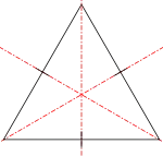 - Cada altura, mediana, bisectriz, mediatriz y eje de simetría de un triángulo equilátero coinciden sobre una misma recta. Por tanto el ortocentro, el baricentro, el incentro y el circuncentro coinciden en un mismo punto central.