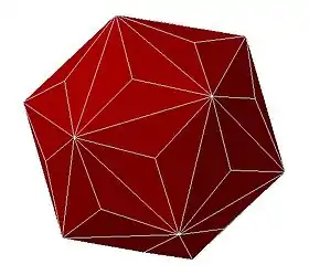 El triaquisicosaedro o Icosaedro triakis es uno de los sólidos de Catalan cuyo dual es el dodecaedro truncado. La construcción del triaquisicosaedro se asemeja a un icosaedro al que se le adhirieron pirámides triangulares bajas en cada cara; en la nomenclatura de los sólidos de Catalan esto le da el prefijo triaquis-.[1]