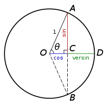El significado de la palabra verseno está reflejado en la definición gráfica de la circunferencia goniométrica que se muestra en la imagen. La cuerda vertical AB de la circunferencia goniométrica, el seno del ángulo θ es la distancia AC (la mitad de la cuerda). El verseno de θ es la distancia CD desde el centro del arco al centro de la cuerda (del arco hacia el seno) o dicho por Fibonacci en latín sinus versus arcus.