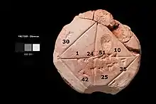 YBC 7289 es una tablilla de barro babilónica reconocida por contener una aproximación sexagesimal equivalente a seis cifras decimales en el sistema decimal de la raíz cuadrada de 2. Según varios expertos es «la mayor precisión computacional de todo el mundo antiguo»[1] Se cree que la tablilla fue creada por un estudiante en el sur de Mesopotamia entre los años 1800 a. C. y 1600 a. C.