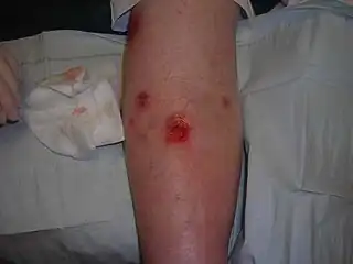- ↑ .Snyder RJ (2005). «Treatment of nonhealing ulcers with allografts». Clin. Dermatol. 23 (4): 388-95. PMID 16023934. doi:10.1016/j.clindermatol.2004.07.020.