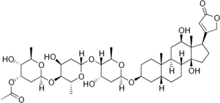 La α-acetildigoxina es un glucósido cardiaco. Se trata de un derivado acetilado de digoxina. Su efecto inotrópico positivo se inicia después de 3-4 horas de haberla administrado y se maximiza después de 6-8 horas. Se prescribe para insuficiencia cardiaca congestiva crónica de clase II, III y IV.