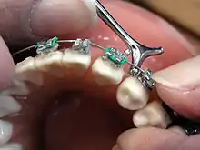 Los términos aparatología fija (también, aparatos dentales, apliques ortodóncicos, frenos correctores, frenillos o brákets (adaptación del inglés brackets)[1] son la denominación habitual en ortodoncia para aludir a los instrumentos terapéuticos que utiliza el ortodoncista, adheridos de manera temporal a los dientes para corregir anomalías de posición dentaria o de los maxilares.