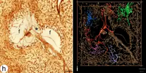 ![]() Sección del bazo, que muestra la terminación de los pequeños vasos sanguíneos. | ||