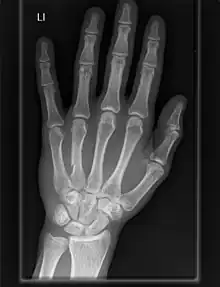 La artrosis de las articulaciones carpometacarpianas es un tipo de enfermedad articular que resulta de la descomposición del cartílago articular y del hueso subyacente.[9] Cuando afecta al pulgar se denomina artrosis trapeciometacarpiana.