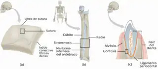 - ↑ Tomco R. «Juntas fibrosas». AnatomyOne. Amirsys, Inc. Archivado desde el original el 16 de enero de 2013. Consultado el 28 de septiembre de 2012.