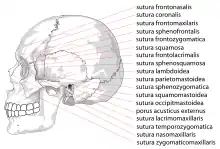 - Sutura frontal / sutura metópica - entre los dos huesos frontales, antes de la fusión de los dos en un solo hueso