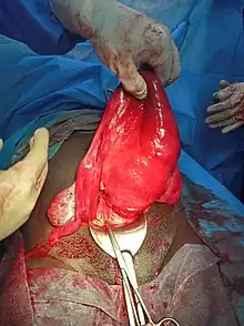La atonía uterina en el curso de una cesárea puede requerir técnicas quirúrgicas como la sutura de B-Lynch o similares.[5]