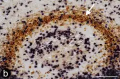 - ↑ MacLennan IC, Bazin H, Chassoux D, et al. Comparative analysis of the development of B cells in marginal zones and follicles. Adv Exp Med Biol. 1985;186:139–144.