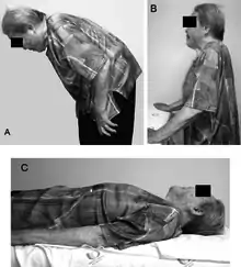 - ↑ Azher, S. N.; Jankovic, J. (9 de agosto de 2005). «Camptocormia: Pathogenesis, classification, and response to therapy». Neurology (en inglés) 65 (3): 355-359. ISSN 0028-3878. doi:10.1212/01.wnl.0000171857.09079.9f. Consultado el 3 de mayo de 2019.