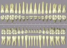 Un diente puede tener una o varias raíces. El número de raíces es generalmente constante para un tipo de diente dado, con alguna variación posible.