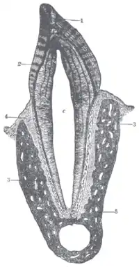 1. Diente 2. Esmalte dental 3. Dentina 4. Pulpa dentaria 5. 6. 7. Cemento 8. Corona 9. 10. 11. cuello 12. Raíz dental 13. 14. 15. 16. Sulcus gingivae