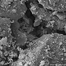 El carbón activado se produce en un proceso de dos pasos. Se comienza con la pirólisis de varios materiales carbonosos, como la madera, el coco, el petróleo o la turba. Este proceso es seguido por un tratamiento a altas temperaturas (600 °C - 900 °C) con una variedad de agentes oxidantes (activadores) como vapor, dióxido de carbono o ácidos para aumentar la capacidad de adsorción mediante la formación de un laberinto interno de poros.[7][8] Las áreas de superficie típicas oscilan entre 800 y 1200 m²/g.[9]