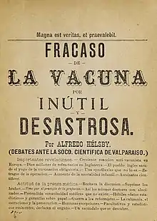 - ↑ Leask J, Chapman S, Cooper Robbins SC (2009). «"All manner of ills": The features of serious diseases attributed to vaccination». Vaccine. PMID 19879997. doi:10.1016/j.vaccine.2009.10.042.