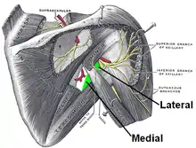 - ↑ http://books.google.es/books?id=_t-xrJDxIZ8C&pg=PA13 Fisioterapia del complejo articular del hombro: Evaluación y tratamiento de los tejidos blandos. Javier Pérez Ares, Javier Sainz de Murieta Rodeyro, Ana Beatriz Varas de la Fuente. Organización Nacional de Ciegos Españoles (ONCE). Editorial Elsevier España, 2004. ISBN 8445813706. Pág. 13