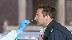 Un cultivo nasofaríngeo es un método de recolección de muestras de secreciones nasales —mediante un hisopo nasofaríngeo— desde la parte posterior de la nariz y la garganta, para la detección de enfermedades.[1][2] Este método de diagnóstico se usa comúnmente en casos sospechosos de tos ferina, difteria, gripe y varios tipos de enfermedades causadas por la familia de virus coronavirus, incluidos el SARS, MERS y COVID-19.[3][4][5][6][7][8]
