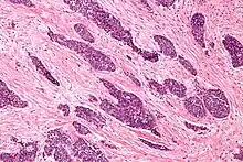 Una respuesta desmoplastic se caracteriza por grandes células del estroma con fibras extracelulares crecientes e immunohistochemically por la transformación de las células fibroblásticas tipo a un fenotipo myofibroblastic. Las células myofibroblastic en tumores se distinguen de los fibroblastos para su coloración positiva de la actina del músculo liso (SMA). Además, un aumento en totales colágenos fibrilares, fibronectinas, proteoglicanos y tenascin C son distintivos de la respuesta de estroma desmoplásico en varias formas de cáncer. Expresión de tenascina C por las células de cáncer de mama se ha demostrado que permite para la metástasis a los pulmones y causar la expresión de tenascina C por el tumor rodea las células del estroma. Además, tenascina C se encuentra ampliamente en tumor pancreático desmoplasia así.