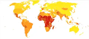 En otras palabras, la desnutrición tiende a causar inmunodeficiencia (leve o moderada), erosionando las barreras que normalmente mantienen a raya a las enfermedades infecciosas. Por ejemplo, esta reversión está bien establecida con respecto a la historia natural variable de la tuberculosis en la era de los medicamentos previos a la TB. Epidemiológicamente, también hay asociaciones entre la desnutrición y otros riesgos para la salud a través del factor subyacente común de la pobreza. Por ejemplo, los condones pueden reducir la propagación del VIH, pero las personas pobres a menudo no tienen dinero para comprar condones o en un lugar cercano para comprarlos. Además, una vez que una persona pobre tiene una infección particular, es posible que no tenga acceso a un tratamiento óptimo, lo que le permite empeorar, presentar más posibilidades de transmisión, etc. Incluso cuando un país en desarrollo nominal/oficialmente tiene un seguro médico nacional con atención médica universal, el cuarto más pobre de su población puede enfrentar una realidad de facto de acceso deficiente a la atención médica.