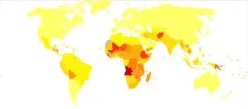 La PEM es bastante común en todo el mundo, tanto en niños como en adultos, y representa 6 millones de muertes al año.[2] En el mundo industrializado, PEM se ve predominantemente en hospitales, se asocia con enfermedades o con frecuencia se encuentra en ancianos.