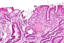 La GAVE se caracteriza por capilares dilatados en la lámina propia con trombos de fibrina. El principal diagnóstico diferencial histomorfológico es la hipertensión portal, que a menudo se manifiesta a partir de los hallazgos clínicos.