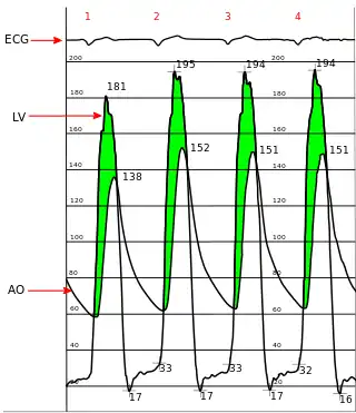 Una válvula aórtica normal tiene un gradiente de pocos mmHg. Un área valvular disminuida provoca un gradiente de presión aumentado, y estos parámetros se utilizan para clasificar y calificar la estenosis aórtica como leve, moderada o grave. El gradiente de presión puede ser anormalmente bajo en presencia de estenosis mitral, insuficiencia cardíaca, insuficiencia aórtica coexistente y también cardiopatía isquémica (disminución del suministro de sangre y oxígeno que causa isquemia).[37]