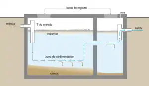 - ↑ Équipe technique du RéFEA. «FOSSE SEPTIQUE: METHODES PRATIQUES DE DIMENSIONNEMENT» (en francés). Consultado el 5 de marzo de 2017.