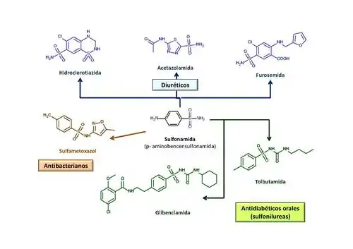 Numerosos fármacos son capaces de producir reacciones de fototoxicidad. Es el caso, por ejemplo, de los derivados del antibacteriano sulfanilamida (p-aminobencensulfonamida), entre los que destacan los antidiabéticos orales glibenclamida, glicazida y tolbutamida, que pertenecen a la familia de las sulfonilureas; los antibacterianos sulfametoxazol, sulfasalazina y sulfadiazina; y los diuréticos furosemida, hidroclorotiazida o acetazolamida (figura 2). Se han detectado reacciones de fototoxicidad con estos fármacos, de intensidad variable atendiendo a las diferencias estructurales.