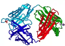 Las regiones variables de las cadenas pesada y ligera se pueden fusionar para formar un fragmento variable de una sola cadena (scFv), que tiene solo la mitad del tamaño del fragmento Fab, pero conserva la especificidad original de la inmunoglobulina original.[2]
