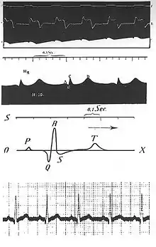 - ↑ 'Einthoven's String GalvanometerThe First Electrocardiograph', Moises Rivera-Ruiz et al, Tex Heart Inst J. © 2008 by the Texas Heart Institute