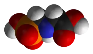 El glifosato es un aminofosfonato y un análogo del aminoácido natural glicina. El nombre es la contracción de glicina, fosfo- y -ato, partícula que designa a la base conjugada de un ácido.