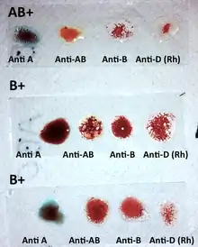Un ejemplo de sus aplicaciones se encuentra en la detección del grupo sanguíneo (sistema ABO). Para ello, se añade un antisuero anti-A, anti-B o anti-AB a la sangre tratada con heparina o EDTA tripotásico (dos anticoagulantes). Cuando los glóbulos rojos poseen el antígeno específico para el antisuero empleado, se produce la aglutinación.