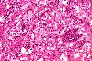 En el diagnóstico diferencial con la metástasis de carcinoma de células renales (que también es común en pacientes con VHL) puede ser particularmente útil la falta de tinción de las células estromales para el antígeno epitelial de membrana (EMA), y la detección de una baja actividad proliferativa en la tinción para Ki67 / MIB-1.[12][13]