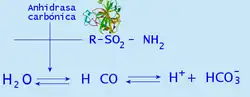 Posteriores estudios revelaron que los diversos sulfonamídicos aromáticos con un grupo sulfamilo libre (-SO2-NH2) eran inhibidores de la anhidrasa carbónica.