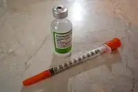 La insulina NPH, también conocida como insulina isofánica, es una insulina de acción intermedia que se administra para ayudar a controlar los niveles de azúcar en la sangre en personas con diabetes.[1] Se administra por inyección debajo de la piel una o dos veces al día.[2] El inicio de los efectos suele ser a los 90 minutos y duran 24 horas.[1] Existen versiones disponibles que vienen premezcladas con una insulina de acción corta, como la insulina regular.[3]