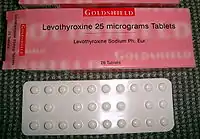 La levotiroxina, L-tiroxina, T4 sintética, o 3,5,3',5'-tetrayodo-L-tironina es una forma sintética de la tiroxina (hormona tiroidea), usada como un reemplazo hormonal en pacientes con problemas de tiroides. La hormona natural se presenta químicamente bajo la forma quiral L, al igual que el agente farmacéutico. La dextrotiroxina sódica (D-tiroxina) fue brevemente investigada como un posible agente anticolesterol, pero fue retirada debido a efectos secundarios cardíacos.