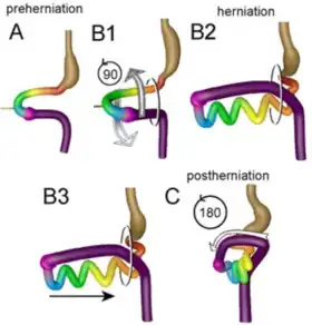 - Se corrige el vólvulo (rotación del intestino en sentido antihorario).