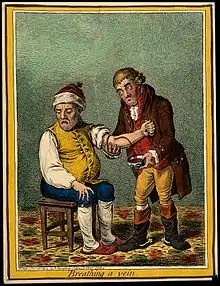 - ↑ «English Caricature: Heroic Medicine--Bloodletting, Emetics, and Laxatives». “Very Ill!” The Many Faces of Medical Caricature in Nineteenth-Century England & France (en inglés estadounidense). Consultado el 4 de enero de 2022.