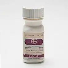 Mestranol/noretinodrel fue la primera píldora anticonceptiva oral combinada (COCP) compuesta por mestranol y norethynodrel. Se vendió como Enovid en los Estados Unidos y como Enavid en el Reino Unido. Desarrollada por el Dr. Gregory Pincus en GD Searle & Company, fue aprobada por primera vez el 10 de junio de 1957 por la Administración de Drogas y Alimentos de los EE.UU. para el tratamiento de trastornos menstruales.[1] La FDA aprobó una indicación adicional para su uso como anticonceptivo el 23 de junio de 1960, aunque solo se hizo legalmente prescribible en todo el país y sin importar el estado civil de la mujer después del caso Eisenstadt v. Baird en 1972.[2][3][4][5] En 1961, fue aprobada como anticonceptivo en el Reino Unido y en Canadá.[6][7]