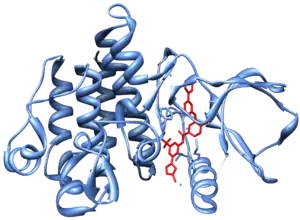 - 1 2 Manley, P.; Cowan-Jacob, S.; Mestan, J. (2005). «Advances in the structural biology, design and clinical development of Bcr-Abl kinase inhibitors for the treatment of chronic myeloid leukaemia». Biochimica et Biophysica Acta 1754 (1–2): 3-13. PMID 16172030. doi:10.1016/j.bbapap.2005.07.040.