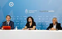 La secretaria de Acceso a la Salud, Carla Vizzotti, manifestó que «es una situación de alerta relevante. En el contexto de un mundo globalizado podemos tener alguna persona que venga de China con algún síntoma y el mensaje para el país es que en este momento hay una alerta en China pero no a nivel mundial. Hay una precaución en relación a los viajes hacia esa ciudad (Wuhan), que en este momento está cerrada»[26] y que la Argentina «está trabajando para que si hubiera una sospecha se pueda identificar. Estamos siguiendo las recomendaciones de la OMS, no hay indicación de restricción de los viajes o de algún monitoreo especial. Sin embargo, sí hay una alerta para casos que cuenten con síntomas de una infección respiratoria aguda grave» y recalcó que «se está trabajando para identificar cualquier caso sospechoso y si lo fuera, se deriva al laboratorio».[27]