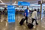 La Administración Nacional de Aviación Civil dispuso el control de todos los vuelos que arriben al aeropuerto internacional de Ezeiza,[104] y la Dirección Nacional de Migraciones, mediante la disposición 1644/2020, dispuso un nuevo protocolo de ingreso para turistas provenientes de los países de riesgo, quienes tendrán que sacar una visa sanitaria y realizar la cuarentena obligatoria de 14 días.[105] La cancillería argentina suspendió los viajes oficiales al exterior y comunicó que aplicará el protocolo a los funcionarios provenientes de los países de riesgo,[106] la Corte Suprema de la Nación dispuso la licencia excepcional para los trabajadores que regresen de los países de riesgo con goce de sueldo,[107] el Ministerio de Seguridad de la Nación dispuso que las cuatro fuerzas federales (Policía Federal, Gendarmería Nacional, Prefectura Naval y la Policía Aeroportuaria) se integren a los operativos en los aeropuertos,[108] y el Ministerio de Turismo y Deportes de la Nación suspendió los espectáculos deportivos durante marzo «que tengan participantes de países con circulación comunitaria», entre ellos el Sudamericano de Natación, la Copa del Mundo de Espada, el Grand Prix de Atletismo y el Preolímpico de Boxeo.[109]
