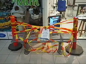 De derecha a izquierda: Estación Herttoniemi sin gente debido a la pandemia, Carpa de prueba de COVID-19 en Vantaa, Calle Fabianinkatu vaciada por la pandemia de COVID-19 en Helsinki, Una bandeja de levadura vacía en un supermercado en Odense, el 17 de marzo de 2020. Tras el anuncio de un cierre generalizado, hubo una compra de levadura a gran escala, incluida la levadura seca y la variedad fresca de vida más corta y un banco en el centro comercial Ruoholahti en Ruoholahti, Helsinki, Finlandia, cubierto con cinta adhesiva y con un letrero que dice: "Bancos fuera de uso debido a la situación de COVID 19". | ||||||||