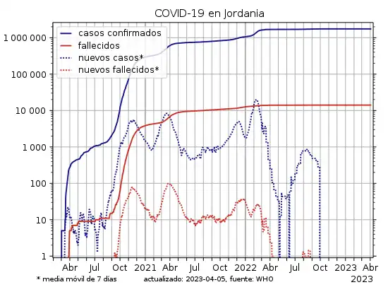 - ↑ «Jordan COVID - Coronavirus Statistics - Worldometer». www.worldometers.info (en inglés). Consultado el 21 de febrero de 2022.