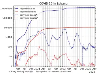 - ↑ «Lebanon COVID - Coronavirus Statistics - Worldometer». www.worldometers.info (en inglés). Consultado el 21 de febrero de 2022.