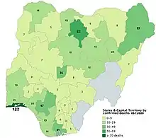 ![]() Regiones afectadas por la pandemia en Nigeria | ||