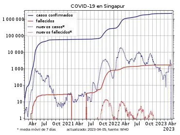 - ↑ «Singapore COVID - Coronavirus Statistics - Worldometer». www.worldometers.info (en inglés). Consultado el 3 de marzo de 2022.