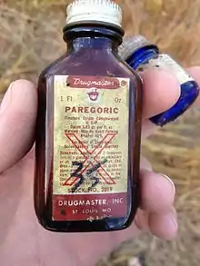 Del latín "Paregoricus". El llamado elixir paregórico es una mezcla de opio y alcohol. Quizás la más potente bebida con opio vendida en algún momento de la historia, en este caso a principios del siglo XX. Se utilizaba como base alcohol alcanforado de 46º y cada onza de elixir paregórico contenía unos 117 mg de opio, equivalentes a 12 mg de morfina. Su uso básico era como antidiarreico. Se vendía con la etiqueta de la Stickney & Poor Spice Co de Boston, Massachusetts donde se estipulaban las dosis así: Para bebés (de 5-8 gotas), niños (25 gotas) y adultos (una cucharadita). Las intoxicaciones opiáceas eran un riesgo potencial.