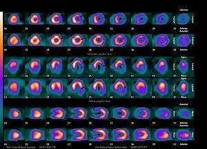 La perfusión miocárdica es una práctica médica que se basa en el uso de radiofármacos (ej: 99mTc-MIBI), los cuales se administran mediante inyección endovenosa (vaso sanguíneo) y se concentran en el tejido miocárdico (2% de la dosis administrada) fijándose en las mitocondrias, pues solo atraviesa las membranas de las células vivas y permiten evaluar indirectamente la irrigación (perfusión) global y regional del ventrículo izquierdo y su viabilidad.